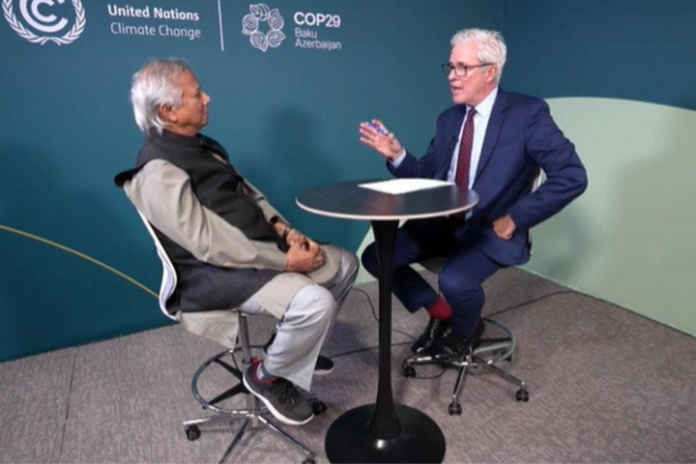 সম্প্রতি আজারবাইজানের রাজধানী বাকুতে অনুষ্ঠিত জাতিসংঘের জলবায়ু সম্মেলন কপ-২৯-এ অংশগ্রহণ করেন ড. ইউনূস। সম্মেলনের ফাঁকে তিনি আল-জাজিরাকে বাংলাদেশের জলবায়ু সংকট এবং রাজনৈতিক পরিস্থিতি নিয়ে আলোচনা করেন।