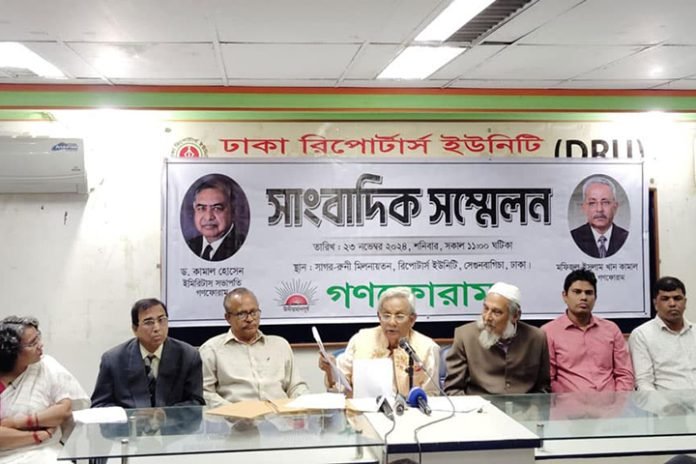 শনিবার (২৩ নভেম্বর) সকাল ১১টায় রাজধানীর সেগুনবাগিচায় ঢাকা রিপোর্টার্স ইউনিটির মিলনায়তনে আয়োজিত এক সংবাদ সম্মেলনে তিনি এসব কথা বলেন।