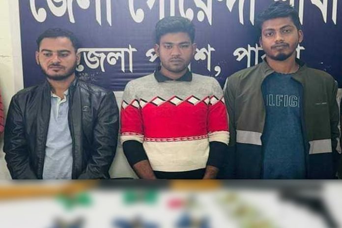 গ্রেফতাররা হলেন- সদর উপজেলার হেমায়েতপুরের ভবানীপুর গ্রামের ইউনুছ বিশ্বাসের ছেলে ইসমাইল বিশ্বাস (২৭), আটঘরিয়া উপজেলার চন্ডিপাশা এলাকার মৃত সুলতান সরকারের ছেলে ইউসুফ আলী (২৬), সদর উপজেলা ছাত্রলীগের আপ্যায়ন বিষয়ক সম্পাদক ও গয়েশপুর ইউনিয়নের সালাইপুর মৃধাপাড়ার এলাকার শাহিনুর রহমানের ছেলে শেখ ফরিদ (২৬)।