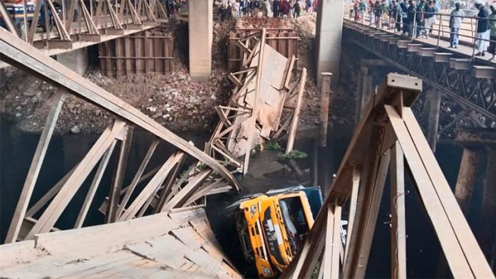 গাজীপুরের টঙ্গীতে বেইলি ব্রিজ ভেঙে একটি ট্রাক তুরাগ নদীতে পড়ে গেছে। এর ফলে ওই লেনে চলাচলকারীদের বিকল্প পথে চলাচলের অনুরোধ করেছে গাজীপুর মেট্রোপলিটন পুলিশ। শনিবার ভোরে ট্রাকটি পুরোনো বেইলি ব্রিজ ভেঙে তুরাগ নদীতে গিয়ে পড়ে।