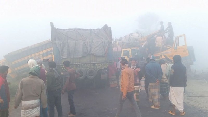 তিনি বলেন, সোমবার সকালে নাটোর-বগুড়া সড়কের ডাল সড়ক এলাকায় বিপরীত দিক থেকে আসা ২টি ট্রাকের মুখোমুখি সংঘর্ষ হয়। ঘন কুয়াশার কারণে রাস্তায় চলাচলরত আরো ৪টি ট্রাক দুর্ঘটনাকবলিত ২টি ট্রাককে ধাক্কা দেয়। দুর্ঘটনাকবলিত ৫টি ট্রাক রাস্তায় ও ১টি ট্রাক খাদে পড়ে যায়। এতে ৭ জন গুরুতর আহত হন। ফায়ার সার্ভিসের সদস্যরা আহতদের উদ্ধার করে নাটোর সদর হাসপাতালে ভর্তি করে। আহতদের একজনের অবস্থা আশঙ্কাজনক।