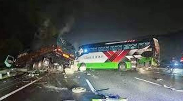 স্থানীয় সংবাদমাধ্যম জানিয়েছে, ২৭ পর্যটকবাহী একটি বাস, একটি লরি ও একটি টয়োটা মাল্টিপারপাস যানবাহনের মুখোমুখি সংঘর্ষে এই দুর্ঘটনা ঘটেছে।বার্তা সংস্থা এএফপি কুয়ালালামপুর থেকে এই খবর জানিয়েছে।