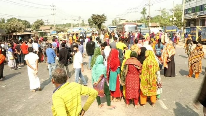 গাজীপুরে মহাসড়ক অবরোধ করে শ্রমিকদের বিক্ষোভ