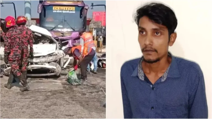 ঢাকা-মাওয়া এক্সপ্রেসওয়েতে ধলেশ্বরী টোল প্লাজায় যাত্রীবাহী বাসের ধাক্কায় একই পরিবারের ৪ জনসহ মোট ৬ জন নিহতের ঘটনায় বাসচালক মোহাম্মদ নুরুদ্দিনকে গ্রেপ্তার করেছে র্যাব।