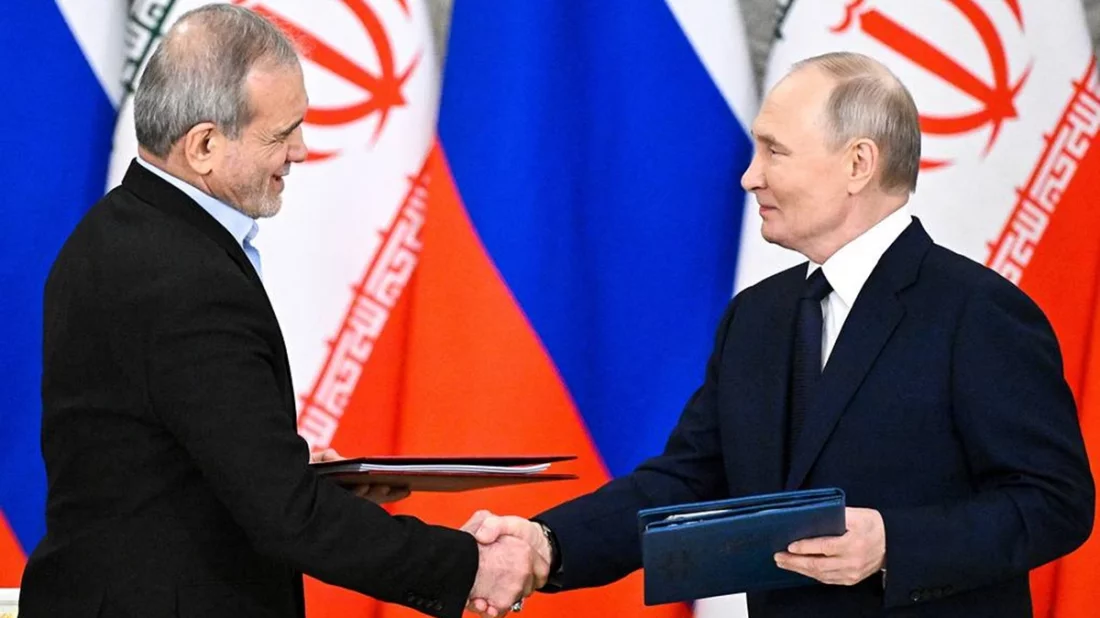 ক্রেমলিনে ভ্লাদিমির পুতিন ও মাসুদ পেজেশকিয়ানের আলোচনার পর চুক্তি অনুষ্ঠানের আয়োজন করা হয়। রাশিয়া ও ইরানের প্রেসিডেন্ট ভ্লাদিমির পুতিন ও মাসুদ পেজেশকিয়ান একটি ব্যাপক কৌশলগত অংশীদারিত্ব চুক্তি সই করেছেন। ক্রেমলিনে আলোচনার পর চুক্তি অনুষ্ঠানের আয়োজন করা হয় বলে তাসের প্রতিবেদনে জানানো হয়েছে।