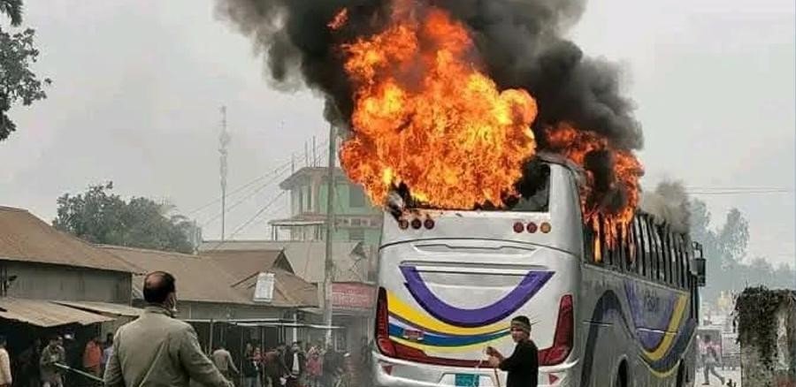 ভূরুঙ্গামারীতে দাড়িয়ে থাকা বাসে অগ্নিকাণ্ড