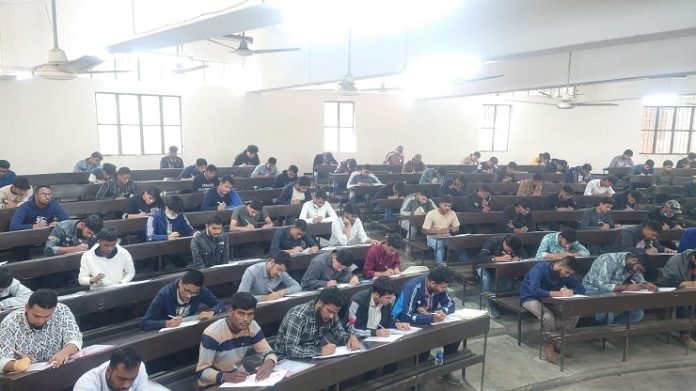 জাহাঙ্গীরনগর বিশ্ববিদ্যালয়ে (জাবি) ২০২৪-২০২৫ শিক্ষাবর্ষে প্রথম বর্ষ স্নাতক (সম্মান) ভর্তি পরীক্ষার চতুর্থ দিনে মোট পাঁচ শিফটে গাণিতিক ও পদার্থ বিষয়ক অনুষদ এবং ইনস্টিটিউট অব ইনফরমেশন টেকনোলজিভুক্ত ‘এ’ ইউনিটে ভর্তিচ্ছু ছাত্রদের পরীক্ষা চলছে।