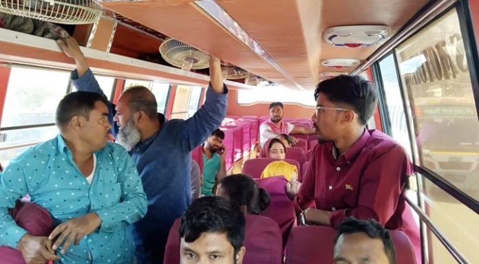 বাসযাত্রীরা জানান, মানিকগঞ্জ থেকে ঢাকার গুলিস্তানের উদ্দেশ্যে যাচ্ছিল শুভযাত্রা পরিবহনের একটি বাস। আজ দুপুর সাড়ে ১২টার দিকে সাভার উপজেলার পুলিশ টাউন এলাকায় ব্রিজের কাছাকাছি যাত্রী নেয়ার উদ্দেশ্যে বাসটি থামানো হয়। এ সময় ধারালো চাকু (ছোট আকৃতির) হাতে দুজন ব্যক্তি বাসে উঠেন। এসময় তারা সামনের দিকের যাত্রীদের তল্লাশি করে মুঠোফোন, ম্যানিব্যাগ ছিনিয়ে নেন। পরে তারা কয়েকজন নারী যাত্রীর গলা থেকে চেইন ছিনিয়ে নেন।
