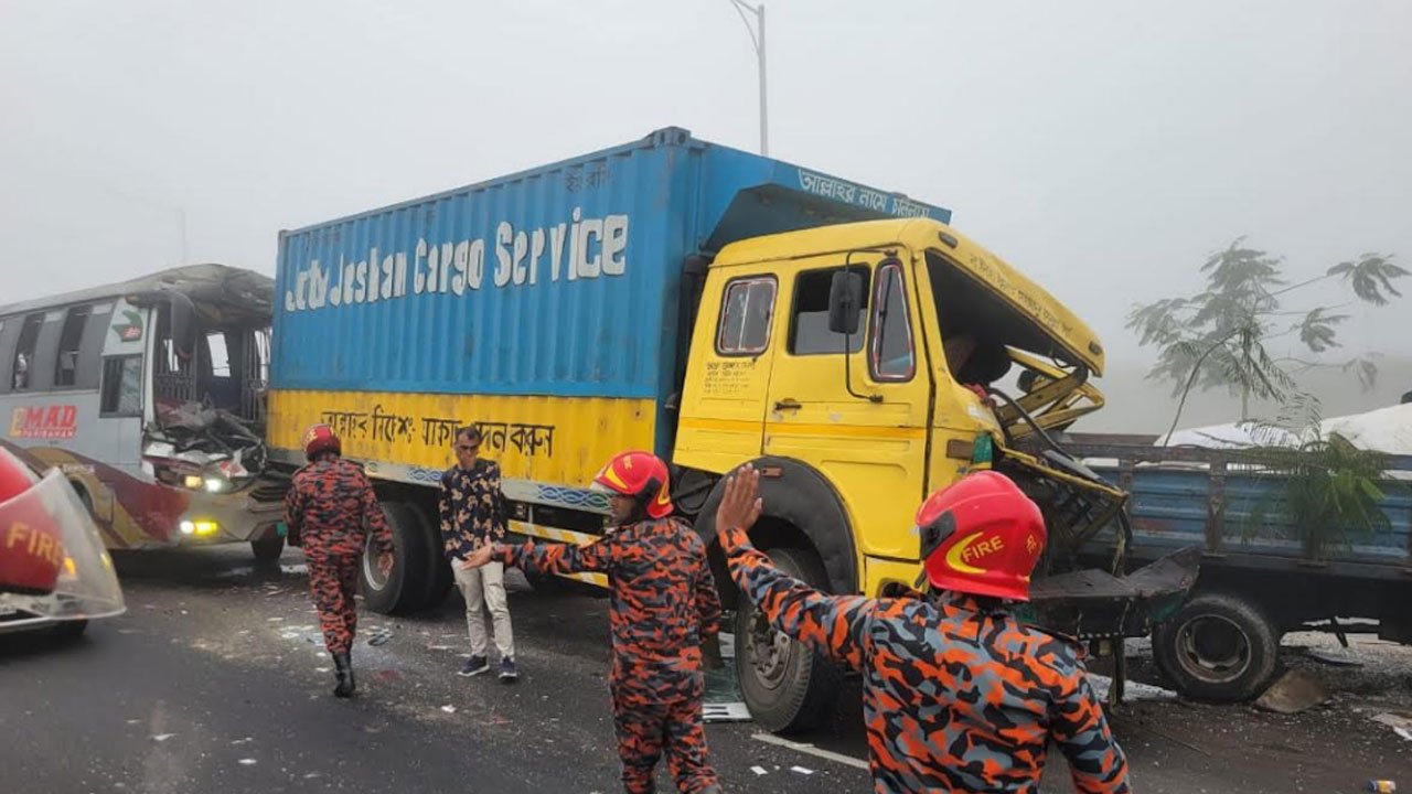 শ্রীনগর উপজেলা ফায়ার সার্ভিস ও সিভিল ডিফেন্স স্টেশন অফিসার মো. দেওয়ান আজাদ হোসেন বলেন, ঘন কুয়াশার কারণে এক্সপ্রেসওয়ের শ্রীনগর উপজেলার কামারখোলা এলাকার ঢাকামুখী লেনে একটি গাড়ি অপর গাড়ির পেছন হতে ধাক্কা দিলে মোট ৫টি গাড়ির দুর্ঘটনা কবলিত হয়। এ সময় ২০ জন আহত হয়েছে। অহতদের উদ্ধার করে বিভিন্ন হাসপাতালে পাঠানো হয়েছে। ক্ষতিগ্রস্ত গাড়ির মধ্যে বাস ও ট্রাক রয়েছে। আমাদের লোক ওখানে কাজ করছে।