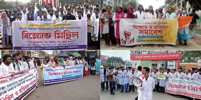 শহীদ জিয়াউর রহমান মেডিক্যাল কলেজের শিক্ষার্থীদের বিক্ষোভ