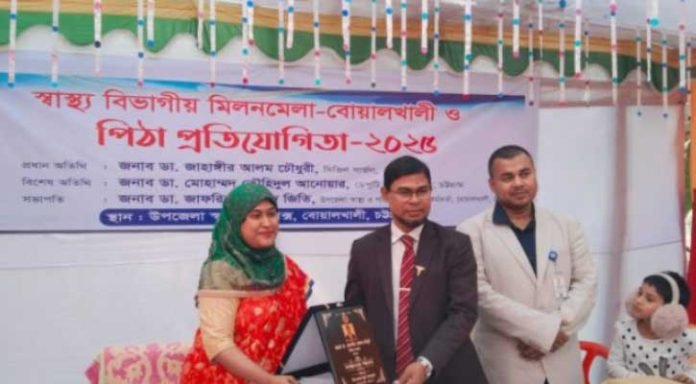 চট্টগ্রামে বোয়ালখালীতে উপজেলা স্বাস্থ্য কমপ্লেক্সে, স্বাস্থ্য বিভাগীয় মিলনমেলা, পিঠা প্রতিযোগিতা উদ্বোধন করা হযেছে।  রবিবার (২৩ ফেব্রুয়ারি) দুপুর ১২ টায় বোয়ালখালী উপজেলা স্বাস্থ্য ও পরিবার পরিকল্পনা কর্মকর্তা, ডাঃ জাফরিন জাহেদ জিতি’র সভাপতিত্বে এক আলোচনা সভা অনুষ্ঠিত হয়।