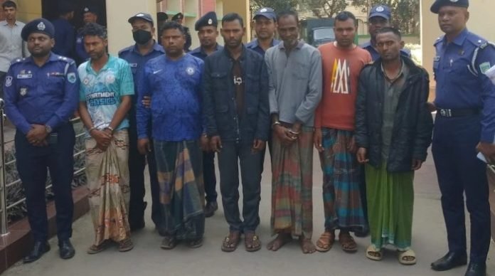 গ্রেফতারকৃতরা হলেন মো. শামীম ইসলাম সব্দুল (২৭), শ্রী রঞ্জিত চন্দ্র বর্মন (৩০), মো. আব্দুল লতিফ ওরফে নাঈম (২৭), মো. শাহারুল ইসলাম (৩৭), মো. শহিদুল ইসলাম (৪০) এবং মো. শাহাদাত হোসেন (৪০)।