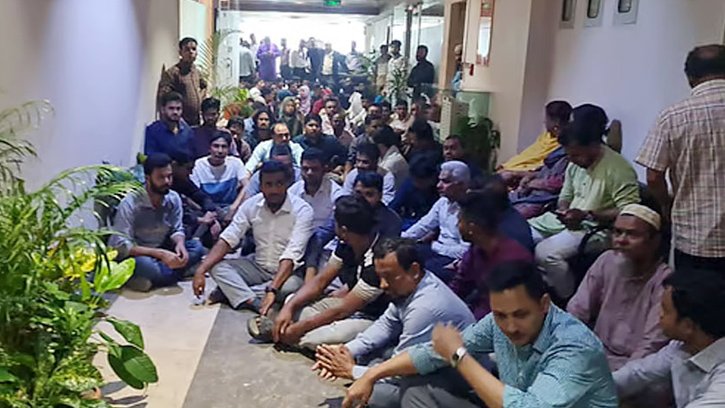 মূল ফটকে দায়িত্বরত নিরাপত্তাকর্মীরা বলছেন, কিছু কর্মকর্তা প্রতিটি ফ্লোরের কাচের ফটকগুলোও বন্ধ করে দিয়েছেন। তাই এক ফ্লোরের কর্মচারীরা অন্য ফ্লোরে যেতে পারছেন না।