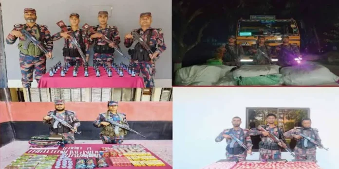 বেনাপোলের বিভিন্ন সীমান্তে অভিযান চালিয়ে এক কোটি পাঁচ লাখ টাকার ভারতীয় চোরাই পণ্য জব্দ করেছে বর্ডার গার্ড (বাংলাদেশ) বিজিবি।