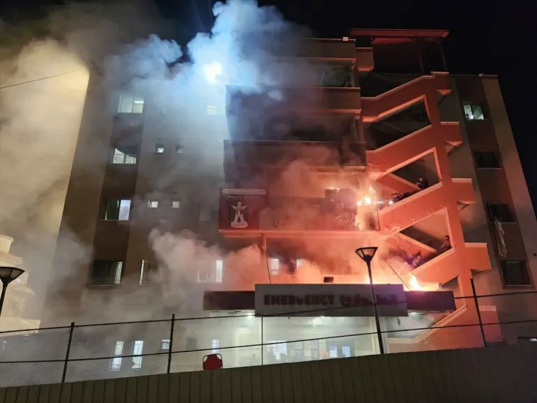 মূলত হাসপাতালের তৃতীয় তলার নির্দিষ্ট একটি ওয়ার্ডে হামলা চালানো হয়। হাসপাতাল কর্তৃপক্ষ জানিয়েছে, ইসরায়েলি হামলায় আগুন ধরে যায় পুরো বিভাগে। আইডিএফের হামলায় হাসপাতালের ব্যাপক ক্ষয়ক্ষতি হয়েছে।
