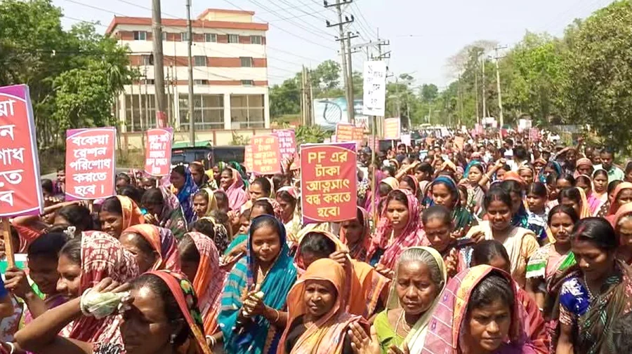 সিলেটের চা–শ্রমিকেরা বকেয়া মজুরি, রেশন পরিশোধসহ ১১ দফা দাবিতে বিক্ষোভ মিছিল করেছেন। সোমবার (২৪ মার্চ) দুপুর সাড়ে ১২টা নাগাদ ‘চা–শ্রমিক ও চা–বাগান রক্ষা কমিটির’ ব্যানারে এ কর্মসূচি শুরু হয়। পরে বেলা দেড়টার দিকে বিক্ষোভ মিছিলটি নগরীর বিভিন্ন সড়ক প্রদক্ষিণ শেষে জেলা প্রশাসকের কার্যালয়ে গিয়ে স্মারকলিপি প্রদান করে।