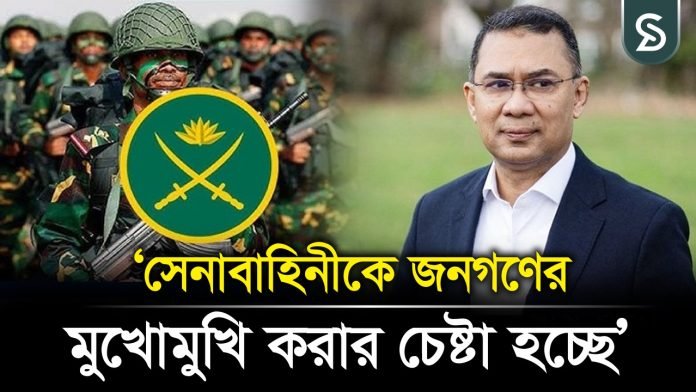 সেনাবাহিনীকে জনগণের মুখোমুখি করার চেষ্টা করা হচ্ছে : তারেক রহমান