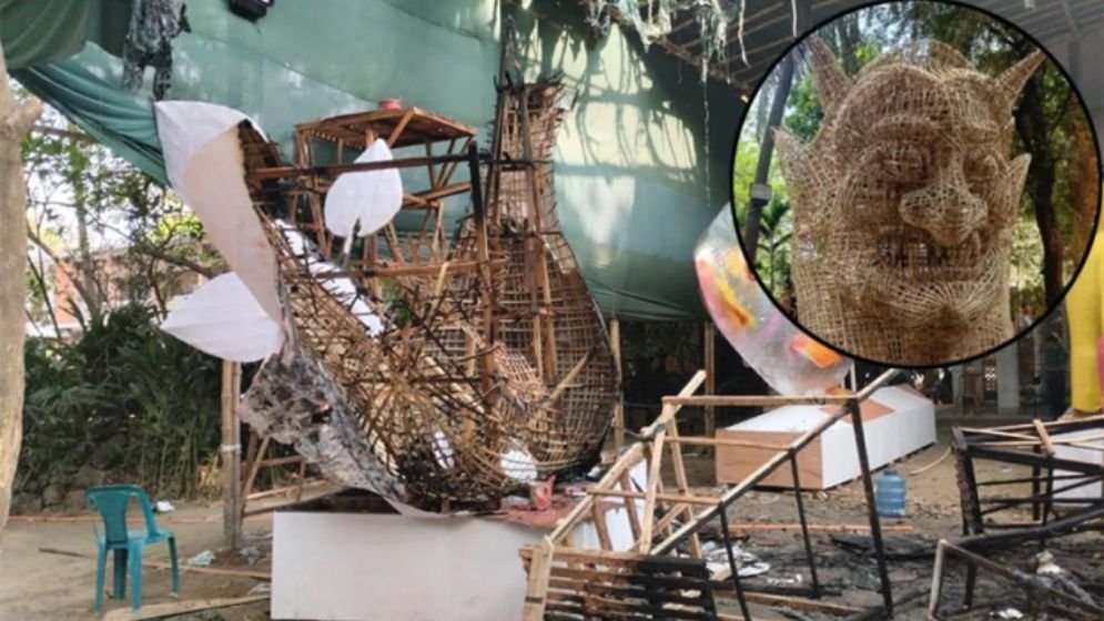 চারুকলায় পুড়ল পহেলা বৈশাখের জন্য বানানো ‘ফ্যাসিস্ট হাসিনার মুখাকৃতি’
