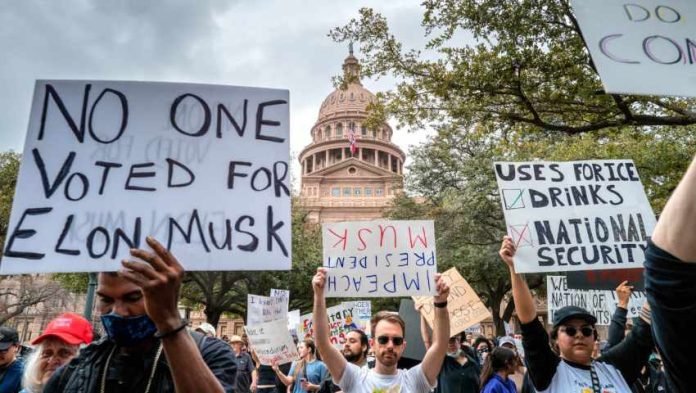 এদিকে ট্রাম্পের বিলিয়নেয়ার উপদেষ্টা ইলন মাস্কের বিরুদ্ধে টেসলা গাড়ির ডিলারশিপ শো-রুমের বাইরে প্রতিবাদের পরিকল্পনা করা হয়েছে বলে জানান বিক্ষোভকারীরা।