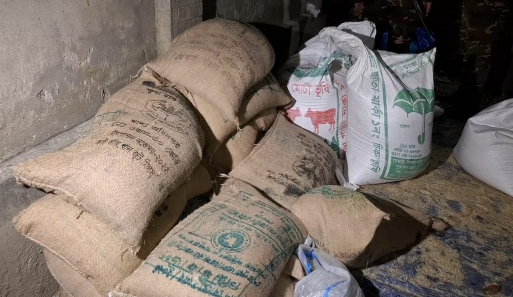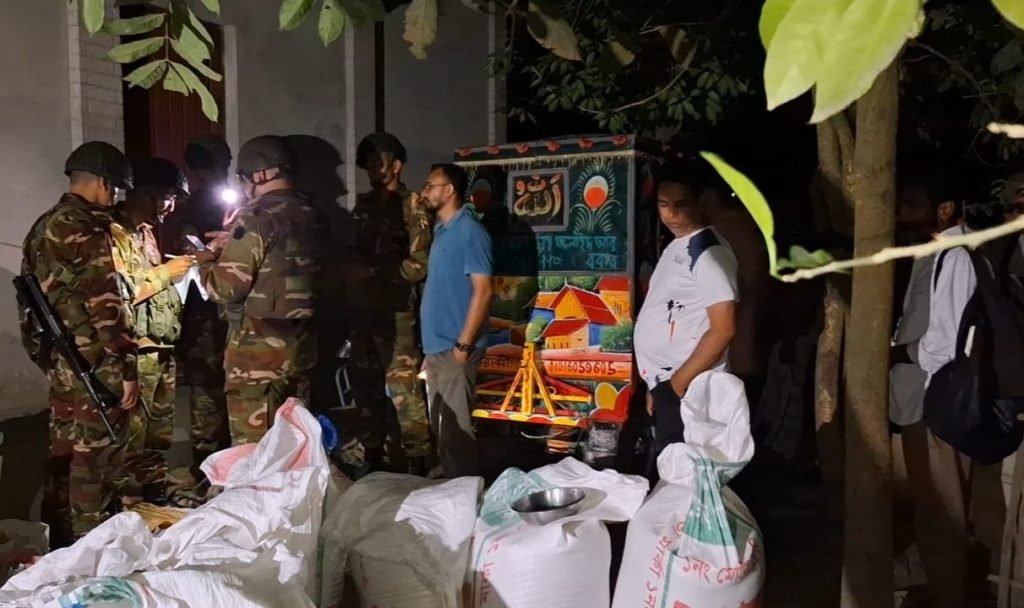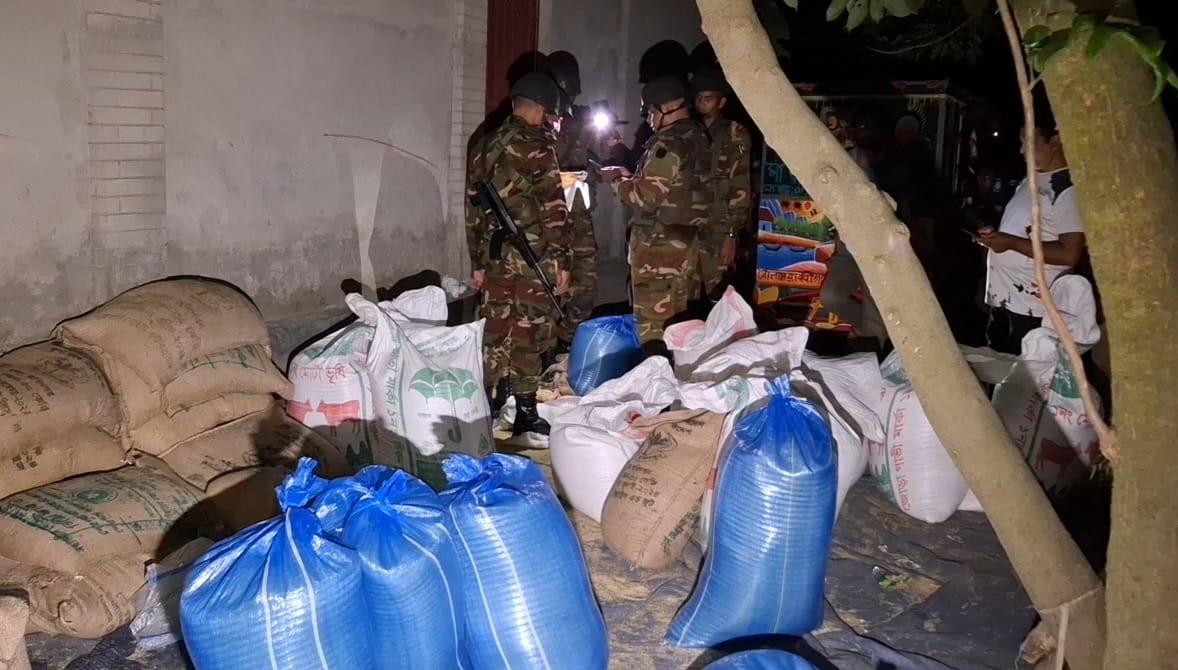 এসময় সেনাবাহিনীর উপস্থিতি টের পেয়ে দৌঁড়ে পালিয়ে যায় কয়েকজন যুবক। পরে সেখান থেকেও কয়েক বস্তা চাল এবং সরকারী খাদ্য গুদামের খালি বস্তা জব্দ করেন তারা।