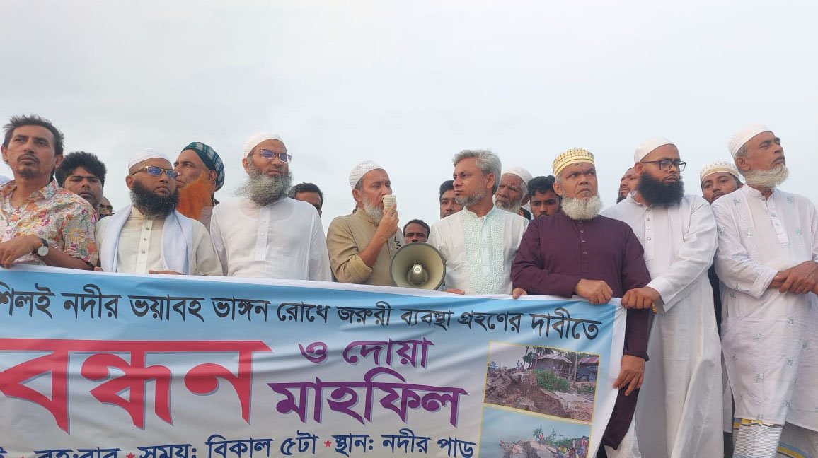 মুন্সীগঞ্জের টঙ্গিবাড়ী উপজেলার দিঘীরপাড় ও মুন্সীগঞ্জ সদর উপজেলার রাখির কান্দি, দেওয়ান কান্দি ও শিলই গ্রাম পদ্মা নদীর ভয়াবহ ভাঙ্গন রোধে জরুরী ব্যাবস্থা গ্রহনের দাবীতে মানববন্ধন ও দোয়া মাহফিল অনুষ্ঠিত হয়েছে।