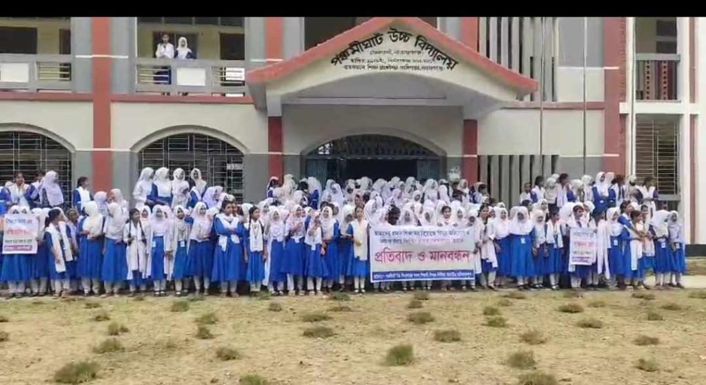 দীর্ঘ ১৫বছর আওয়ামীলীগের প্রভাবে প্রধান শিক্ষকের চেয়ার দখল করে রেখে নতুন কৌশল হিসেবে বিদ্যালয়ে পড়ুয়া কোমলমতী শিক্ষার্থীদের দিয়ে তার সাজানো মানববন্ধন করে থাকেন এই দুর্নীতিবাজ লম্পট শিক্ষক জাহাঙ্গীর আলম।