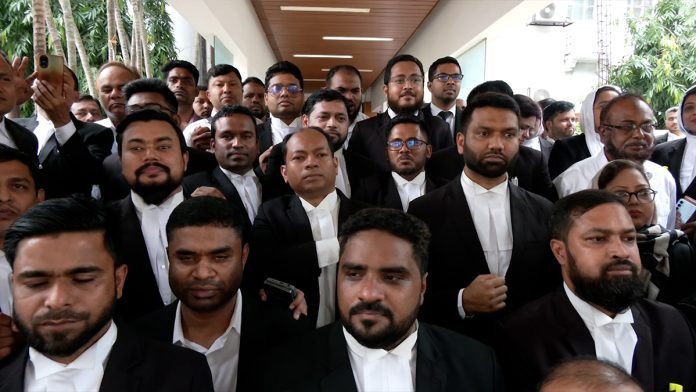 সাবেক বিচারপতি খায়রুল হকের গ্রেফতারের দাবিতে আইনজীবীদের বিক্ষোভ