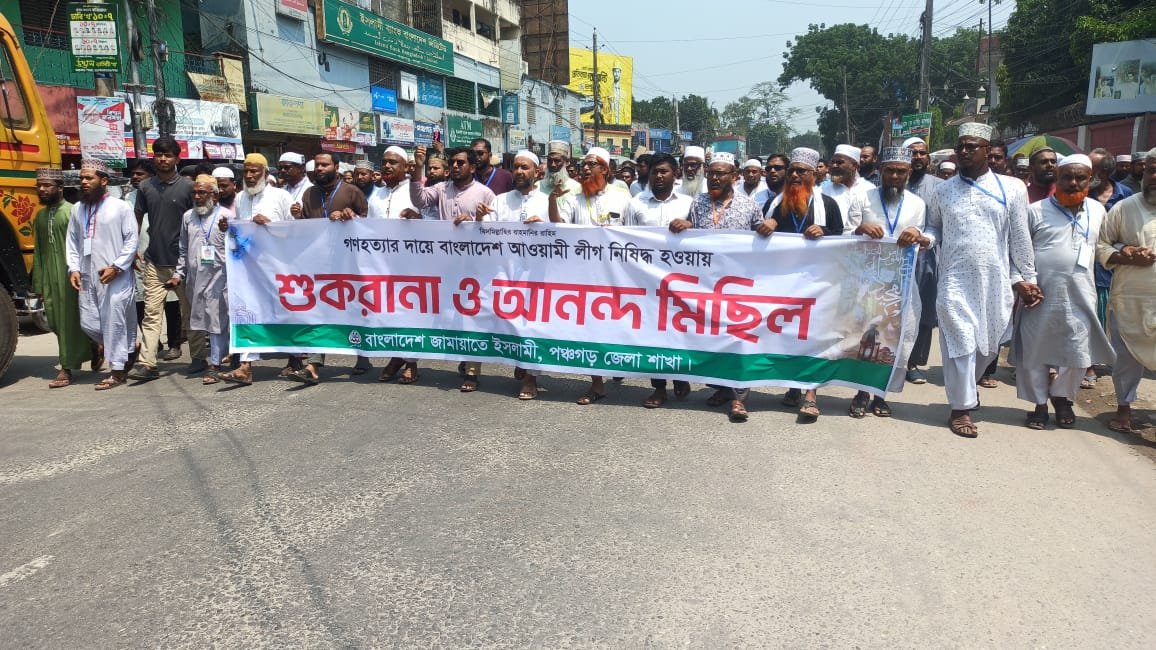 রবিবার দুপুরে জেলা জামায়াতে ইসলামীর আয়োজনে জেলা শহরের মিঠাপুকুর এলাকার পঞ্চগড় ডায়াবেটিকস সমিতির সামনে থেকে একটি শোকরানা ও আনন্দ মিছিল বের করা হয়। পরে মিছিলটি শহরের প্রধান প্রধান সড়ক প্রদক্ষিণ করে চৌরঙ্গী মোড় এলাকায় গিয়ে শেষ হয়। পরে সেখানে সংক্ষিপ্ত সমাবেশ অনুষ্ঠিত হয়।