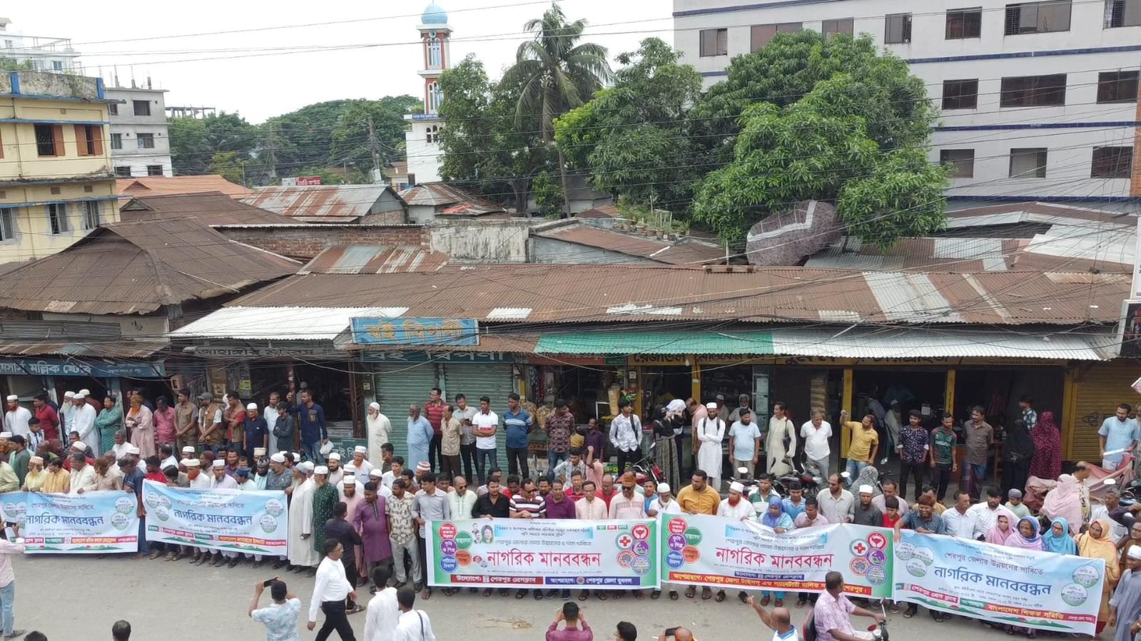 পিছিয়ে পড়া শেরপুর জেলার যৌক্তিক উন্নয়নের ন্যায্য ৫ দফা দাবিতে এক ‘নাগরিক মানবন্ধন’ অনুষ্ঠিত হয়েছে। শেরপুর প্রেসক্লাবের আয়োজনে বৃহস্পতিবার (১৫ মে) সকাল ১১টা এক মিনিট থেকে দুপুর ১২ টা পর্যন্ত এ মানববন্ধন অনুষ্ঠিত হয়। মানববন্ধনে ধর্ম-বর্ণসহ রাজনৈতিক ভেদাভেদ ভুলে শহরের খোয়ারপাড় শাপলা চত্বর মোড় থেকে অস্টমীতলা পর্যন্ত ৫কিলোমিটার সড়কের দুই পাশে অর্ধলাখ মানুষ অংশগ্রহণ করেন।