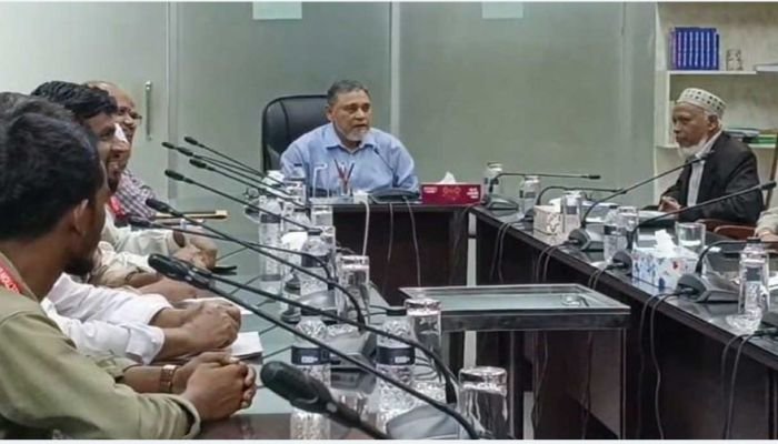 প্রধান নির্বাচন কমিশনার (সিইসি) এএমএম নাসির উদ্দিনের সঙ্গে বৈঠক করছেন বিপ্লবী গণজোটের সাত সদস্যের প্রতিনিধি দল।