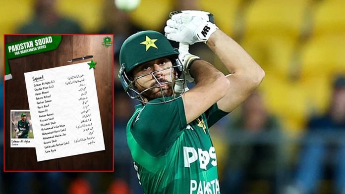 সালমান আলী আঘাকে অধিনায়ক করে বাংলাদেশের বিপক্ষে সিরিজের জন্য ১৬ সদস্যের দল ঘোষণা করেছে পাকিস্তান। দল থেকে বাদ পড়েছেন একঝাঁক অভিজ্ঞ ক্রিকেটার।