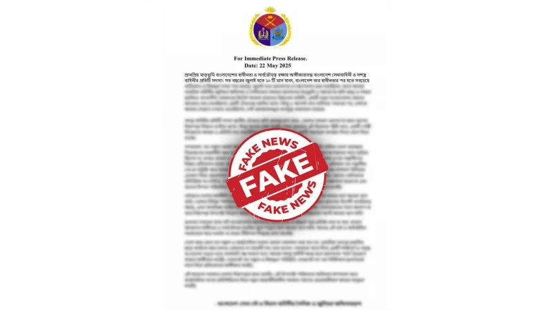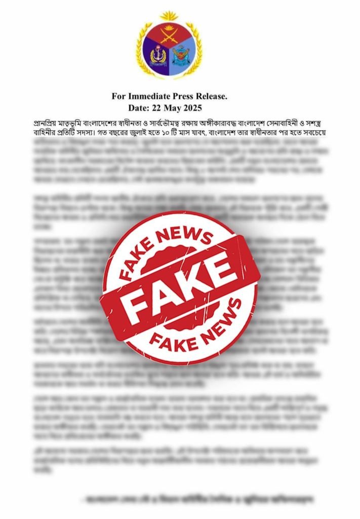 সচেতনতামূলক বিজ্ঞপ্তি উল্লেখ করে ফেসবুক পোস্টে বলা হয়, সম্প্রতি একটি স্বার্থান্বেষী মহল বাংলাদেশ সশস্ত্র বাহিনীর লোগো ব্যবহার করে একটি ভুয়া প্রেস বিজ্ঞপ্তি প্রকাশ করেছে। যার মাধ্যমে সাধারণ জনগণের মাঝে বিভ্রান্তি সৃষ্টির পাশাপাশি সশস্ত্র বাহিনী ও জনগণের মধ্যে বিভেদ তৈরির অপচেষ্টা চলছে।