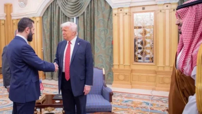 ট্রাম্প গত সপ্তাহে আকস্মিকভাবে ঘোষণা দেন, তিনি সৌদি আরবের ক্রাউন প্রিন্সের অনুরোধে সিরিয়ার ওপর থেকে নিষেধাজ্ঞা তুলে নেবেন- যা ছিল যুক্তরাষ্ট্রের নীতিতে বড় ধরনের পরিবর্তন। এরপর তিনি রিয়াদে শারাআ’র সঙ্গে সংক্ষিপ্ত বৈঠক করেন।