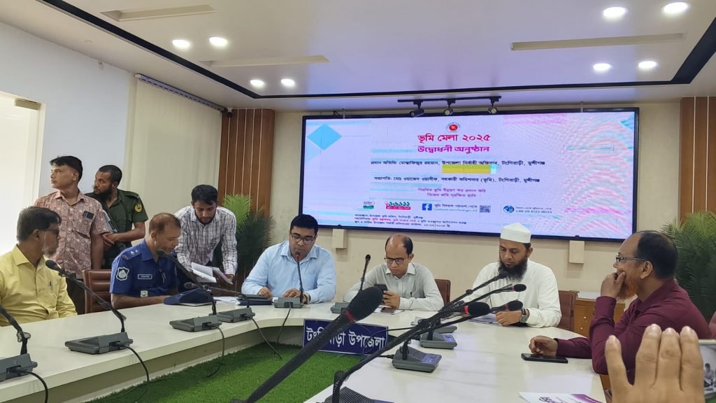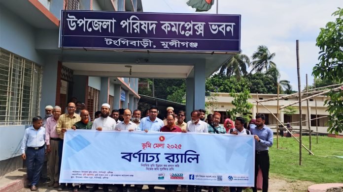 ‘নিয়মিত ভূমি কর প্রদান করি,নিজের জমি সুরক্ষিত রাখি’ এই প্রতিপাদ্য কে সামনে রেখে মুন্সীগঞ্জের টঙ্গীবাড়ীতে শুরু হয়েছে তিন দিনব্যাপী ভূমি মেলা।