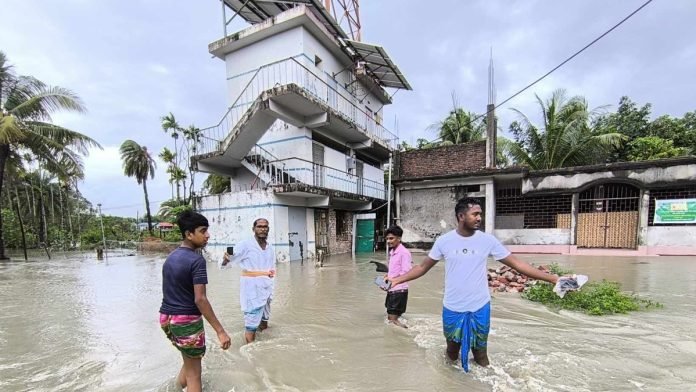 নদ-নদীতে স্বাভাবিকের চেয়ে বেশি জোয়ারের পানি প্রবাহিত হয়ে বিভিন্ন গ্রাম ব্যাপকভাবে প্লাবিত হওয়ায় পরিস্থিতি দুর্ভোগে রূপ নিয়েছে।