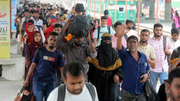 গ্রামে থাকা প্রিয়জনের সঙ্গে ঈদুল আজহা উদযাপন শেষে রাজধানীতে ফিরতে শুরু করেছে মানুষ। তবে ঈদের দুদিন পরেও কর্মস্থলমুখী মানুষের চাপ খুবই কম। ঈদের পরে লম্বা ছুটি হওয়ায় গ্রামে ফেরা মানুষের রাজধানীতে কর্মস্থলে ফিরতে কিছুটা দেরি হচ্ছে। এখনো পুরোদমে আসা শুরু হয়নি। তবে গত দুদিনের তুলনায় আজ ঢাকায় ফেরা যাত্রীর কিছুটা বেশি। আগামী বৃহস্পতিবার থেকে যাত্রীর চাপ বাড়বে বলে মনে করছেন সংশ্লিষ্টরা।