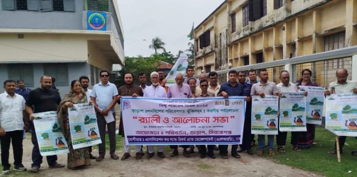 প্রাণ ও প্রকৃৃতি রক্ষা করি-প্লাস্টিকমুক্ত বাংলাদেশ গড়ি প্রতিপাদ্য নিয়ে সিরাজগঞ্জরে তাড়াশে নানা আয়োজনে বিশ্ব পরিবেশ দিবস পালিত হয়েছে। দিবসটি উপলক্ষ্যে বে-সরকারী উন্নয়ন সংস্থা পরিবর্তন এর উদ্যোগে চলনবিলে পরিবেশগত ঝুঁকিসমূহঃ করণীয় পর্যালোচনা, র্যালী ও আলোচনা সভা অনুষ্ঠিত হয়েছে।