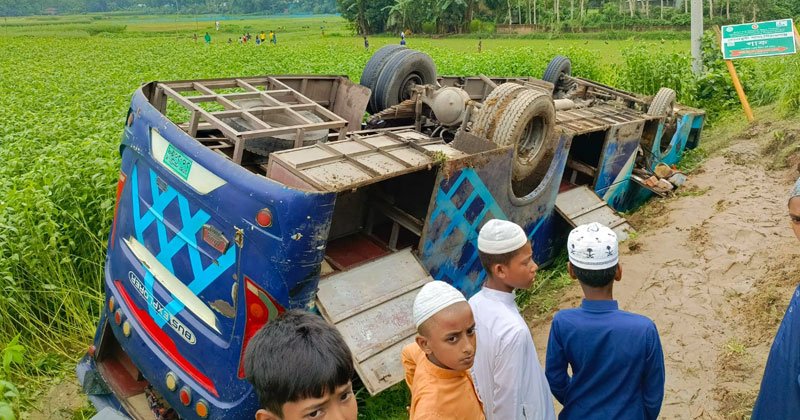 কাজিপুরে বাস উল্টে নিহত ১, আহত ৪