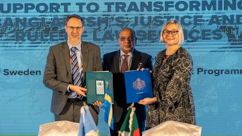 বাংলাদেশে সুইডেন দূতাবাস ও জাতিসংঘ উন্নয়ন কর্মসূচি (ইউএনডিপি) গতকাল রবিবার একটি চুক্তি স্বাক্ষর করেছে, যার মাধ্যমে দেশে চলমান বিচার ব্যবস্থার সংস্কারে তাদের সহায়তা অব্যাহত থাকবে।