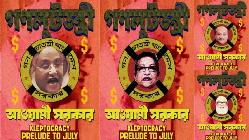 প্রকাশিত এ পোস্টারের পোস্টে বলা হয়েছে, ‘আমার চাওয়া পাওয়ার কিছু নাই। আমি আসছি মানুষকে দিতে’- মুখে এই কথা বলে বলে স্বৈরশাসক শেখ হাসিনা ফেনা তুলে ফেললেও ভেতরের চিত্র কি ছিল এটা এখন উন্মোচিত। রাষ্ট্রীয় পৃষ্ঠপোষকতায় লাগামহীন এবং অবিশ্বাস্য স্কেলের এই লুটপাট আওয়ামী লীগ আমলের এক বড় নির্দেশক।’