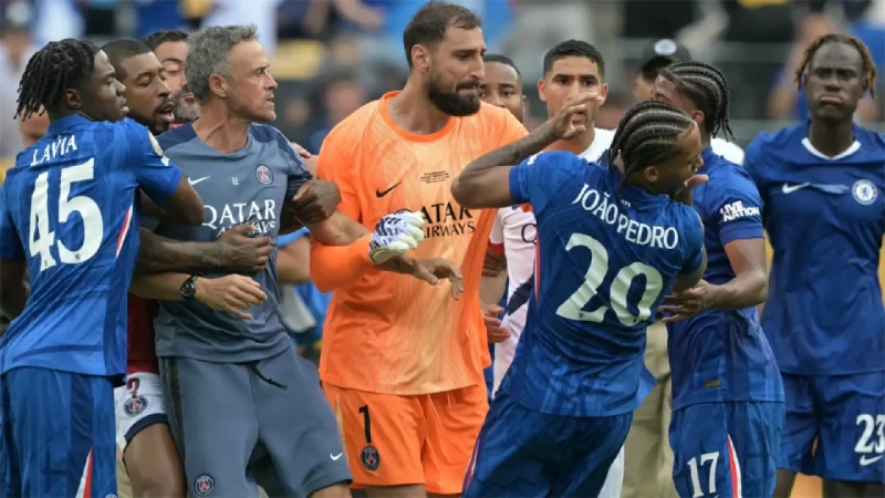 ম্যাচ শেষে হাতাহাতিতে জড়ান দুই দলের কয়েকজন খেলোয়াড়। এর মধ্যেই ক্যামেরাবন্দি হয় পিএসজি কোচ লুইস এনরিকের চেলসি ফরোয়ার্ড জোয়াও পেদ্রোকে ধাক্কা দেওয়ার দৃশ্য, যা নিয়ে শুরু হয় বিতর্ক।