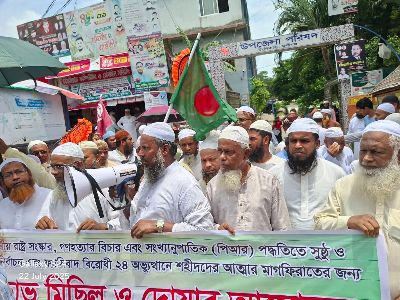 মুন্সীগঞ্জের টঙ্গীবাড়ীতে প্রয়োজনীয় রাষ্ট্র সংস্কার, গনহত্যার বিচার, সংখ্যানুপাতিক (পিআর) পদ্ধতিতে সুষ্ঠু ও নিরপেক্ষ নির্বাচন এবং ফ্যাসিবাদী বিরোধী ২৪ অভুত্থানে শহীদদের আত্মার মাগফিরাতের জন্য বিক্ষোভ মিছিল ও দোয়া মাহফিল অনুষ্ঠিত হয়েছে।