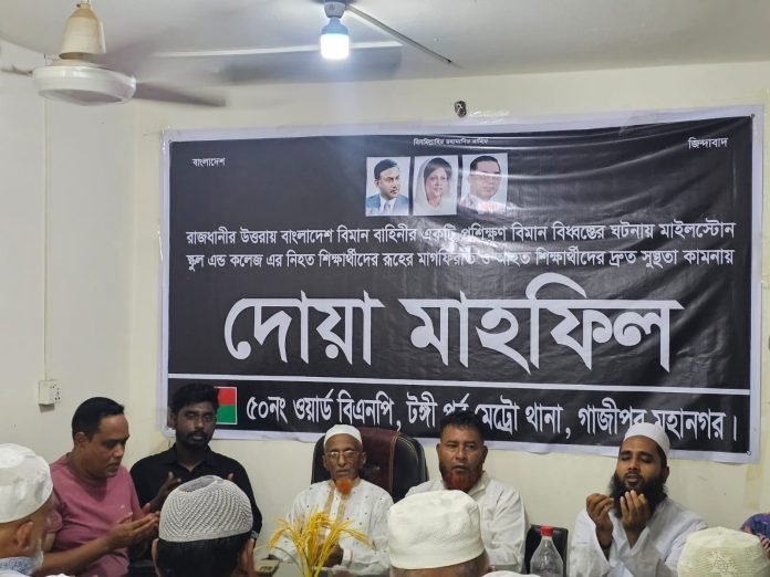 মাইলস্টোন ট্র্যাজেডি: টঙ্গীতে ৫০ নং ওয়ার্ড বিএনপি’র উদ্যোগে দোয়া মাহফিল