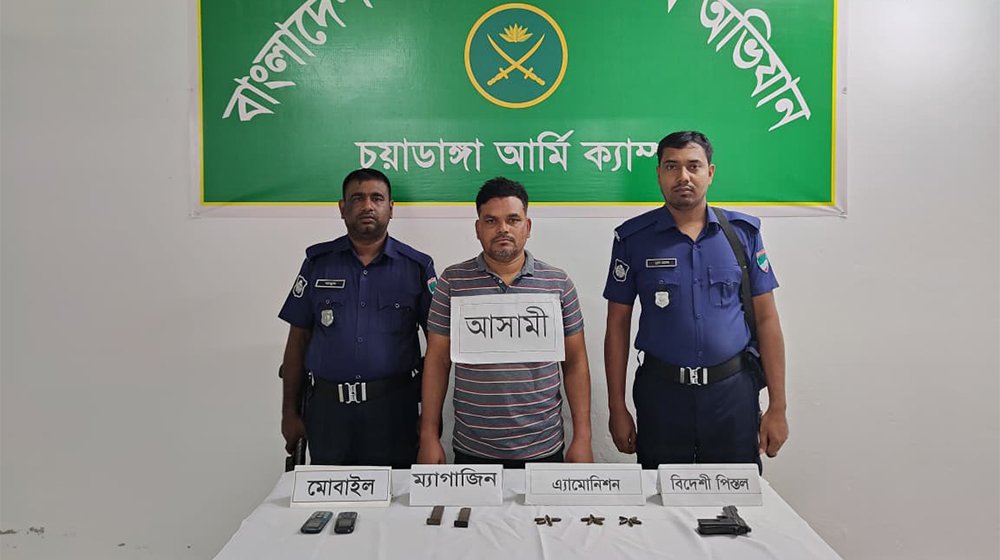 চুয়াডাঙ্গার দামুড়হুদায় সেনাবাহিনীর অভিযান, অস্ত্র ও গুলিসহ এক সন্ত্রাসী গ্রেপ্তার