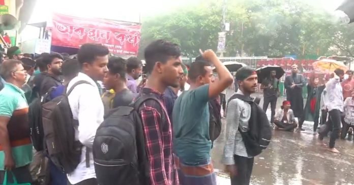 জুলাই সনদ ঘোষণা ও বাস্তবায়নসহ ৫ দফা দাবিতে সকাল থেকেই শাহবাগ মোড় অবরোধ করছেন তারা।