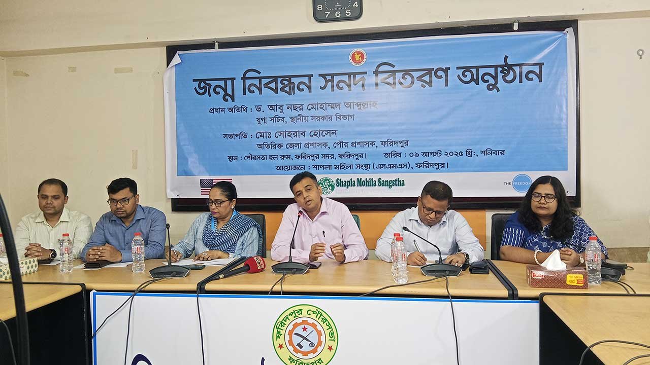 ওই সভায় প্রধান অতিথি হিসেবে স্থানীয় সরকার বিভাগের যুগ্ম সচিব আবু নছর মোহাম্মদ আব্দুল্লাহ ফরিদপুর শহরের রথখোলা ও ফরিদপুর সদরের ডিক্রিরচর ইউনিয়নের সিএন্ডবি ঘাট এলাকায় অবস্থিত দুটি যৌনপল্লীর যৌনকর্মীদের ৩৫ জন শিশুর হাতে জন্মসনদ তুলে দেন। অনুষ্ঠানে সভাপতিত্ব করেন ফরিদপুর পৌরসভার প্রশাসক ও অতিরিক্ত জেলা প্রশাসক (সার্বিক) সোহরাব হোসেন।