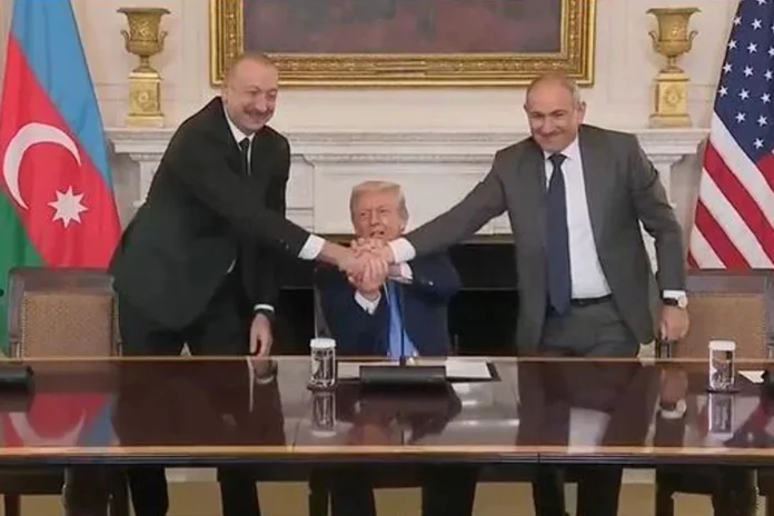আর্মেনিয়া ও আজারবাইজানের মধ্যে একটি শান্তি চুক্তি হয়েছে। দেশ দুটির মধ্যে কয়েক দশক ধরে চলা সংঘাত অবসানে হোয়াইট হাউসে এই চুক্তি স্বাক্ষরিত হয়। এ সময় মার্কিন প্রেসিডেন্ট ডোনাল্ড ট্রাম্প উপস্থিত ছিলেন।