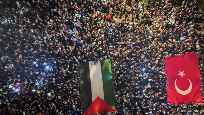 গাজায় গণহত্যা ও অনাহারের প্রতিবাদে ইস্তাম্বুলে বিক্ষোভ করেছে হাজারো মানুষ। স্থানীয় সময় শনিবার (৯ আগস্ট) সন্ধ্যায় মাগরিব নামাজের পর ইস্তাম্বুলের বেয়াজিত স্কয়ারে হাজার হাজার ফিলিস্তিন-সমর্থক বিক্ষোভকারী জড়ো হয়ে গাজায় ইসরায়েলের চলমান গণহত্যা ও খাদ্য সংকটের বিরুদ্ধে প্রতিবাদ জানান। এক প্রতিবেদনে তুরস্কের রাষ্ট্রীয় সংবাদ সংস্থা আনাদোলু এজেন্সি এ তথ্য জানায়।