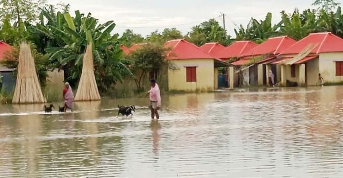 দেখা যায়, আশ্রয়ণ প্রকল্পে যাওয়ার পাকা সড়কে কোথাও হাঁটু পানি আবার কোথাও কোমর পর্যন্ত পানি। প্রতিটি গলিতেও পানি প্রায় হাঁটু সমান। বেশির ভাগ ঘরের মেঝেতে ঢুকে পড়েছে পানি। পানিতে তলিয়ে গেছে রান্নাঘর, টয়লেট। এতে নোংরা পানির দুর্গন্ধে অসহনীয় হয়ে পড়েছে এলাকার পরিবেশ। ছোট শিশু ও বৃদ্ধরা ঘর থেকে বের হতে পারছে না। সুপেয় পানির অভাব ও নোংরা-দুর্গন্ধযুক্ত পানির স্পর্শে বাড়ছে ডায়রিয়া, চর্মরোগহ বিভিন্ন পানিবাহিত রোগের প্রকোপ। একই সঙ্গে দেখা দিয়েছে সাপ ও নানা ধরনের পোকামাকড়ের আনাগোনা। পানিবন্দি হওয়ার কারণে অনেকটাই বেকার হয়ে পড়েছেন এখানকার বাসিন্দারা।
