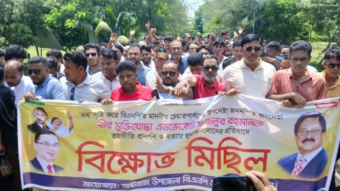 ‘মব’ সৃষ্টি করে বিএনপি চেয়ারপারসনের উপদেষ্টা অ্যাডভোকেট বীর মুক্তিযোদ্ধা ফজলুর রহমানকে ‘ভয় ভীতি প্রদর্শন’ ও ‘হত্যার হুমকি’র প্রতিবাদে কিশোরগঞ্জের অষ্টগ্রামে দ্বিতীয় দিনের মতো বিশাল বিক্ষোভ মিছিল হয়েছে।